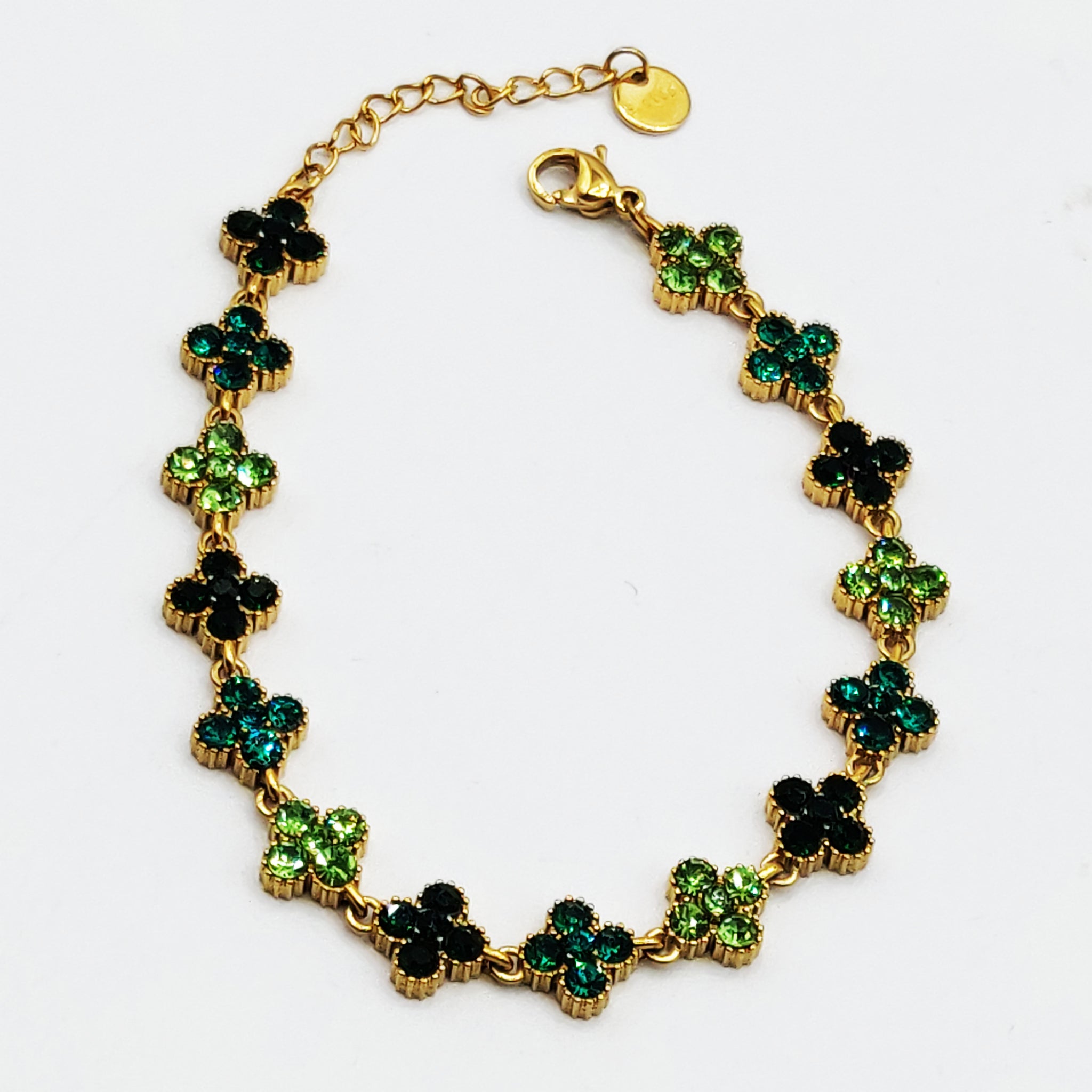 Bracelet Multi Trèfles Cristaux Nuances de Vert Luxe