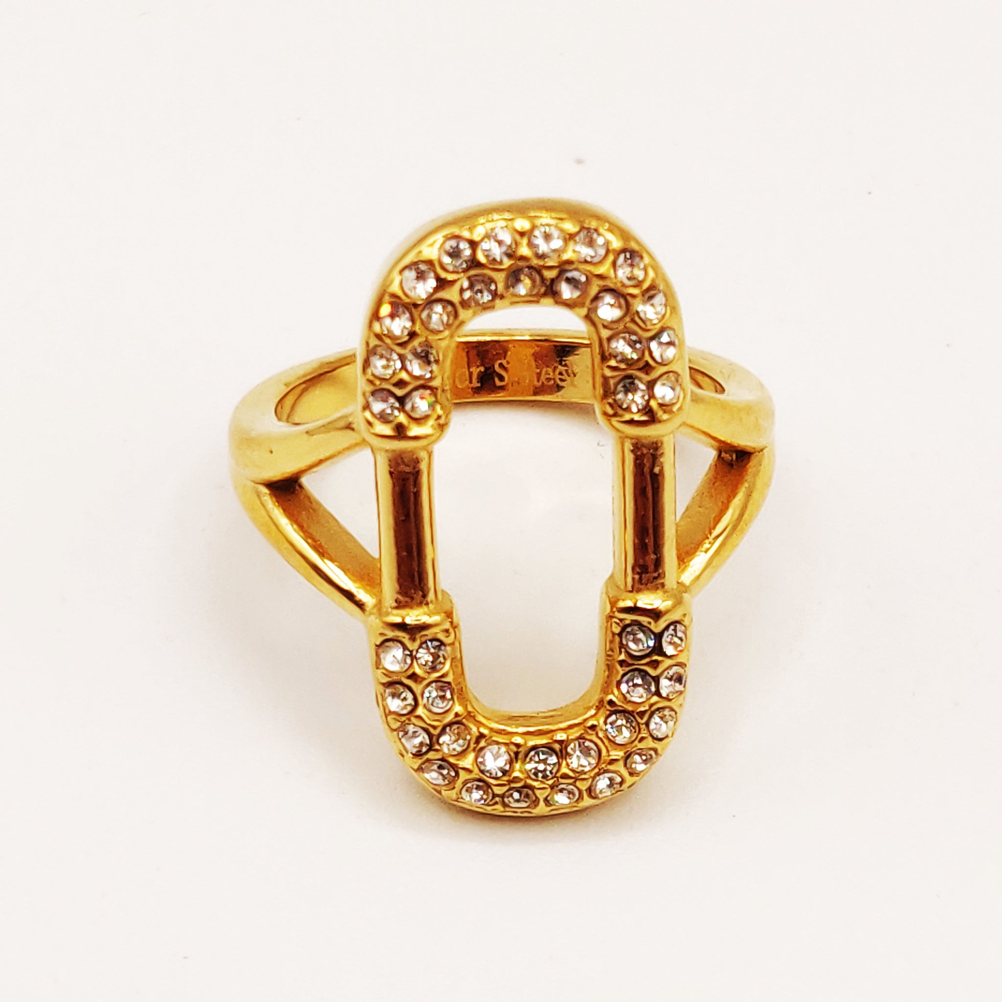 Bague Torsade Multi Lignes Pendentif Double U Cristaux Luxe