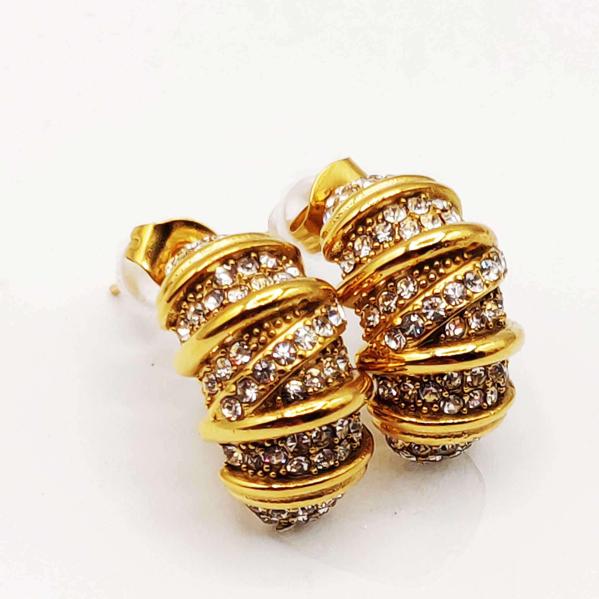 Boucles d'oreilles Torsade Dorée et Cristaux Luxe